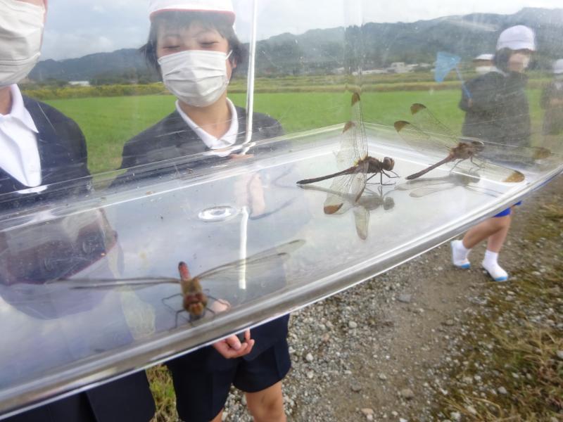 今回のターゲットは運動場でもよく見かけるトンボの調査です。童謡にも出てくる赤トンボ。実は赤トンボと呼ばれるトンボは4種類もあるそうです。子供達もびっくり