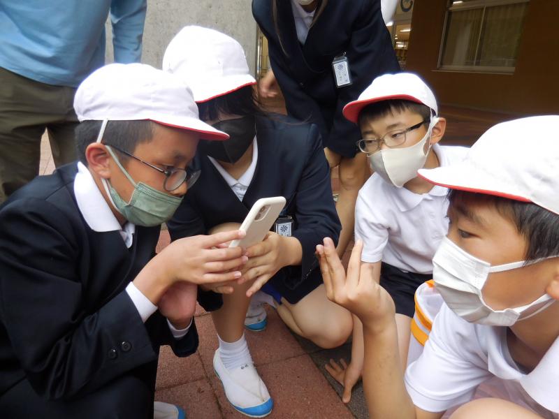 天気に恵まれなかったこともあり,実際に子供達が捕まえた赤トンボは2種類。イトトンボも2種類見つけました。アプリ「バイオーム」で特徴に注目しながら観察し,生き物登録をしました。普段運動場で見かける赤トンボは違う種類の可能性があることも教えていただきました。つがいで飛んでいる赤トンボもいました。水辺に産卵する種類と,飛びながら産卵する種類がいるそうです。運動場でつがいで飛んでいる赤トンボは産卵している可能性もあるそうです。