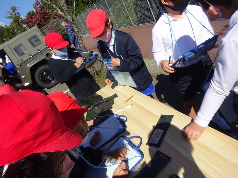 活動中には疑問に思ったことを自分から自衛隊の方に質問をしにいき,積極的にメモをしていました。普段知ることのできない自衛隊の活動をたくさん知ることができました。