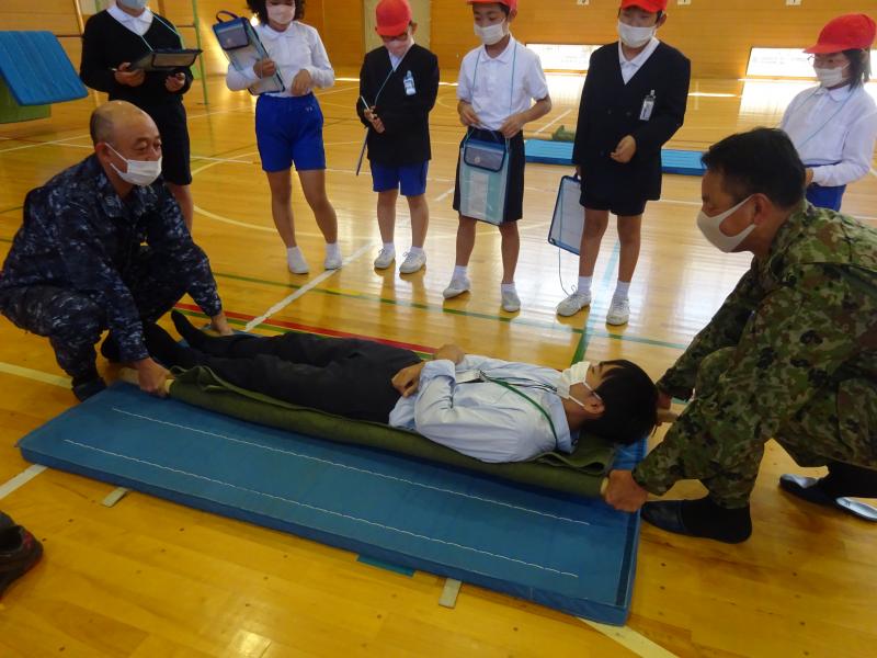 2022年10月21日 17時50分10月19日(水) 陸上自衛隊3名,海上自衛隊1名をゲストティチャートとしてお招きし,災害が起こったときにどのような活動をしているのかを教えてもらいました。