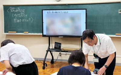 - 温(あたた)かい雰囲気(ふんいき)の授業(じゅぎょう)で、年代(ねんだい)の異(こと)なる体験者(たいけんしゃ)の方(かた)が授業(じゅぎょう)を受(う)けられている様子(ようす)がよくわかりました。
