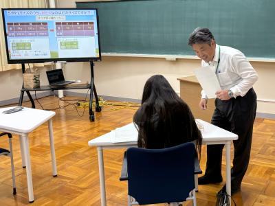 今週は、お二人の参加がありました。11/14に来られた方には、英語と数学の体験授業と入学説明会等を行いました。11/15に来られた方には、個別相談を行いました。