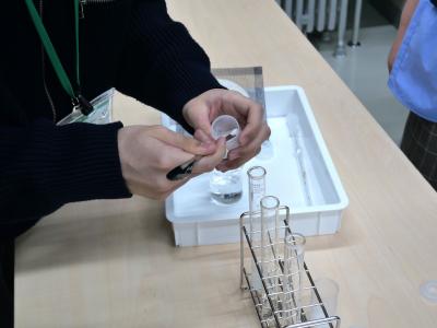 本校の理科の授業では、実験を数多く取り入れています。どの生徒さんも、実験をすることがとても新鮮なようで、皆さん楽しそうに行っています。