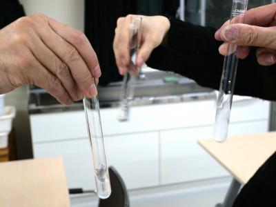 ほんこうの りかの じゅぎょうでは、じっけんを かずおおく とりいれています。どの せいとさんも、じっけんをすることが とてもしんせんなようで、みなさん たのしそうに おこなっています。