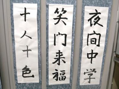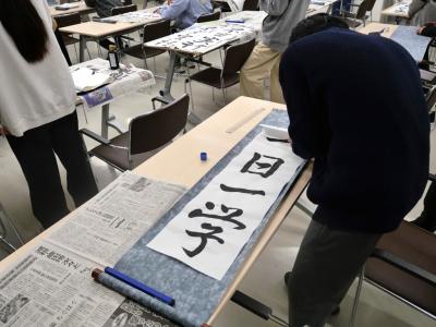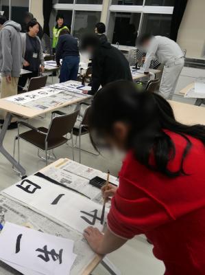 その後に、書初め会を行いました。生徒の皆さんは、それぞれの思いを表現されていました。書初めに真摯に向き合う生徒さんの姿に感動しました。生徒の皆さん、素晴らしかったです!