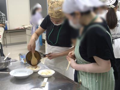 この日は、お月見団子を作るのに、もち米からできる白玉粉を使いました。白玉粉を使うと、粘りがあり、モチモチとした食感になります。ちなみにうるち米からできる上新粉で作られるものを知っていますか?上新粉は歯切れがよいので、ういろうに使われるそうです。そして、もち米とうるち米を混ぜただんご粉を使ったものには、ぜんざいがあるそうです。先生は、食べ比べてみたくなりました。