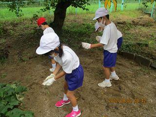 1~4年生が,肥料をまいて秋野菜の土づくりを行いました。