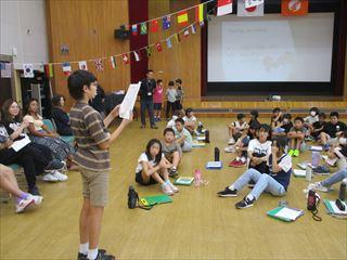 先週に引き続き,今度は5年生がイングリッシュキャンプに行ってきました。6年生と同様,粟ノ保小,瑞穂小,西北台小の3校の5年生が合同で行いました。UK,アメリカ,フィリピン出身のALTと交流し,それぞれの国の食べ物や文化等について学習しました。他校の友達もたくさんできて,楽しい2日間を過ごしました。