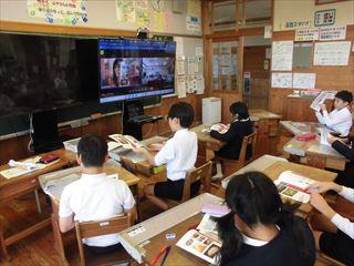 5・6年生は,(株)イーコミュニケーションが行うオンライン授業で,フランス文化について学びました。フランス人の講師から,英語を通して,人気のある食べ物やスポーツ等を教えていただきました。