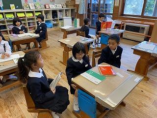 1年生は,自分の学びについて友だちの方をしっかり向いて話すことができていました。