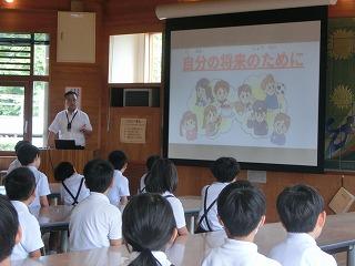 終業式では,校長先生から陸上の「10秒の壁」についてのお話があり,粟ノ保っ子もあきらめず努力してほしいと話されました。その後,地区別に分かれて,自分達の地区の危険なところについて話し合いました。明日から,長い夏休みに入りますが,交通ルール等を守り,安全に元気に過ごしてほしいです。