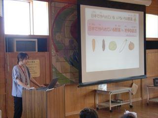 栄養教諭の上田先生から日本の野菜についてお話していただきました。地域の伝統野菜や地産地消等について学ぶことができました。