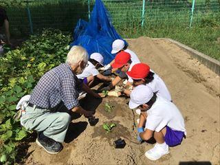 1~4年生が,大根の種と白菜・ブロッコリーの苗を植えました。秋の収穫に向けて,しっかりお世話していきます。