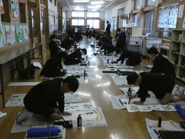 始業式では校長先生から「一年のK(計)は元旦にあり」という「計画・経験・継続」のお話,巳年の「蛇」にまつわるお話を聞きました。その後,書き初め大会では,児童それぞれが,冬休みに練習した成果を発揮してがんばっていました。作品は,15日までランチルームに展示します。