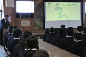 粟ノ保小学校を卒業した中学生2名を招いて、中学校の様子を聞いたり、質問したりする「語る会」を行いました。6年生にとって、中学校の様子をよく聞く中で様子がよくわかり、不安な気持ちがやわらぐとともに、さらに希望をもつ良い機会となりました。中学生、ありがとうございました。