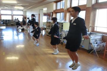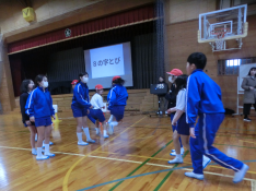 3学期に入り,すぐになわとび練習が開始され,チーム練習に,個人練習にと「なわとびムード」に囲まれています。1月31日のなわとび集会に向け,どの子もレベルアップ中です。休み時間に,ズラリと並んで練習する場面,そして,高学年が低学年に教える場面も多く見られます。