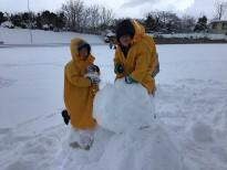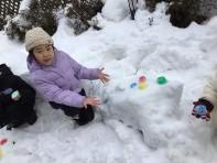 たくさんの雪が積もったので、運動場などでおおはしゃぎ!1・2年生はチャンスを見てたっぷり雪遊びを楽しみました。おおきな雪だるまをつくったり、雪像をつくって色を付けたりして楽しみました。