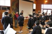 5月に夏野菜,そして9月に秋野菜を地域の方の指導をいただきながら植え,それを収穫したものを使い,お世話になった方を招いて会食をするハーベストフェスティバルを行いました。調理担当は5年生。午前中にめった汁を作って準備をしました。また,プレゼントを作る学年など,みんなで準備をしてきました。まずは,畑自慢,そして収穫したものをプレゼンで発表しました。その後は,お世話になった方々とおいしく会食を楽しみました。最後に,作ったプレゼントをお礼とともに渡ししました。すてきな,ほっとする温かいひと時となりました。