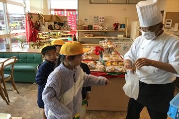 生活科の学習で,シャルドンさんへ行き,お店を調べてきました。とってもいいにおいに,みんな「おなかすてきたぁ!」なども…。「大変なことは何ですか?」「おすすめのパンは何ですか?」など,次々に質問する2年生に一つ一つ丁寧に答えて下さいました。最後に,なんと,おいしいパンをいただきました。シャルドンさん,ありがとうございました。
