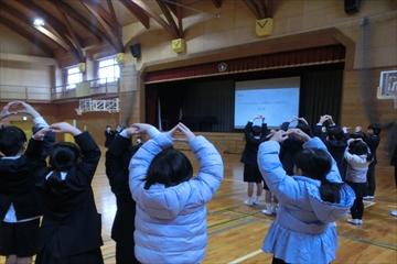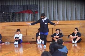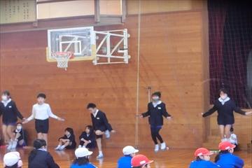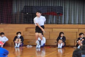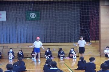 冬のなわとびチャレンジに向けて,高学年児童が,技の正しい跳び方,難しい技の模範をしました。さすが高学年!いろんな技を軽々とこなす様子に低学年の子ども達は驚いていました。冬の体力づくり,がんばりましょう!