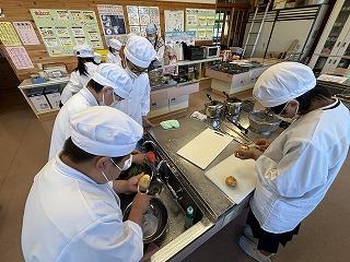 家庭科の学習でゆでる調理をしました。今回はじゃがいもとほうれん草をゆでました。初めての調理実習ということで,どのように調理実習をするのか,どんな手順でするのかを丁寧に確認しながらしました。できあがった「ゆでいも」と「ほうれん草のおひたし」はとてもおいしくできあがりました。