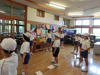 今日は,雨が降った時バージョンの開会式や全校競技の練習をしました。