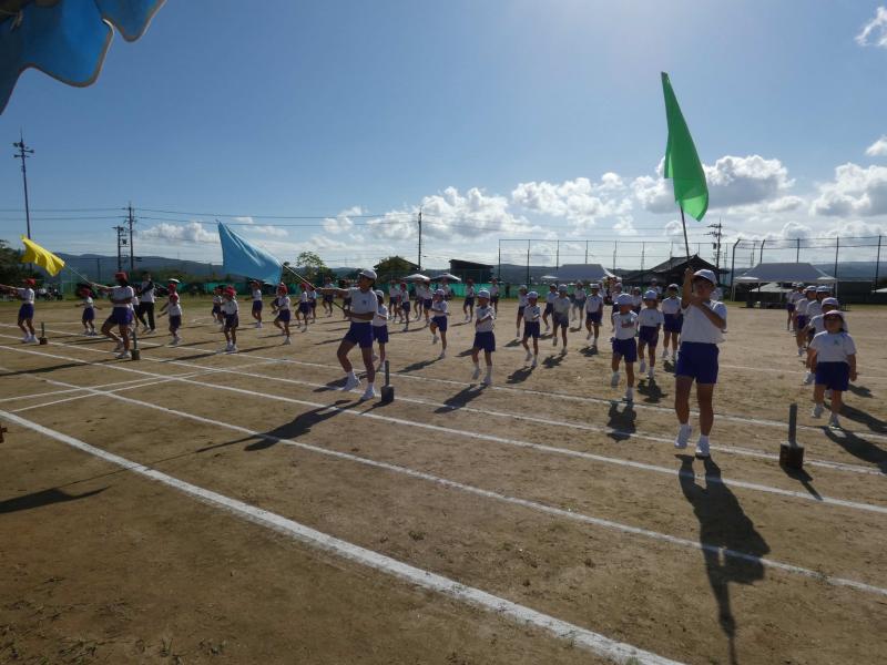 子供たちも気合十分!きびきびと行進する姿や個走前の呼名で,大きな返事をする姿などが見られました。どの競技も盛り上げり,校舎が移転して以来,初の赤白引き分けで幕を閉じたのでした。