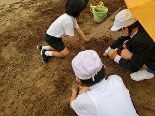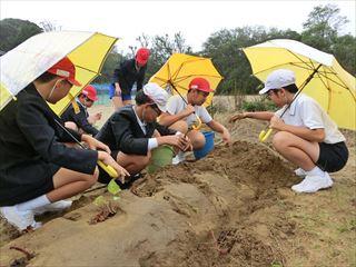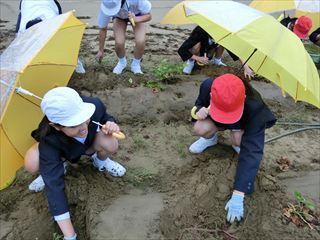 2025年10月14日 16時55分10月14日(火)は,あいにくの天気でしたが,傘をさしてさつま芋ほりをしました。