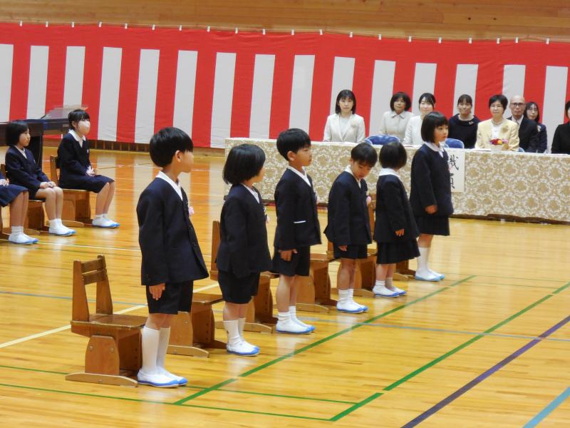 暖かな日差しが降り注ぐ中,ピカピカのランドセルを背負ったかわいらしい1年生6名が,本日粟ノ保小学校の仲間入りを果たしました。担任の先生から一人ひとり名前を呼ばれると,大きな声で「はい!」と返事をすることができました。期待と希望に満ち溢れています。校長先生からは本校の「ひまわり憲法」のお話もありました。そして,式典に華を添えてくれたのは,2年生によるダンス「StaRt」です。心のこもったパフォーマンスは,会場全体を温かい雰囲気に包みこみました。