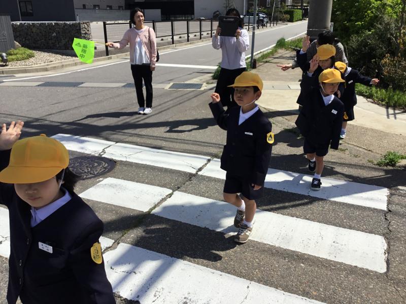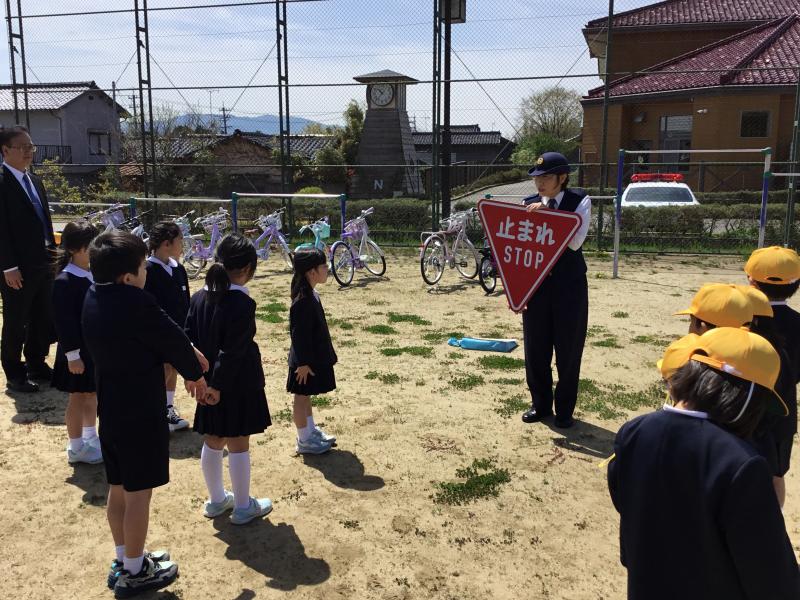 4月22日(火)に,1・3年生の交通安全教室が行われました。七尾警察署の方から,歩道と路側帯の違いや安全な歩き方,前だけでなく後ろも確認してから自転車に乗ることなど,たくさんのことを教えてもらいました。その後は,いよいよ実地訓練です。粟ノ保交通安全協会やPTA成人教育委員会の方々が見守る中,1年生はみんなで歩きながら,習ったことを確認しました。3年生は,自分の自転車で安全を確認しながら乗ることができました。