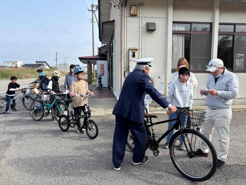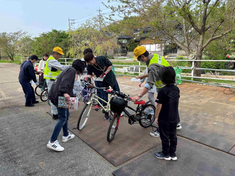 4月19日(土)に各町内の会館前で自動車点検が行われました。点検チェック表をもとに,交通安全協会粟ノ保分館の方々が丁寧に点検をしてくださいました。タイヤの空気やサドルの高さなどを直していただき,安心して自転車に乗ることができますね。