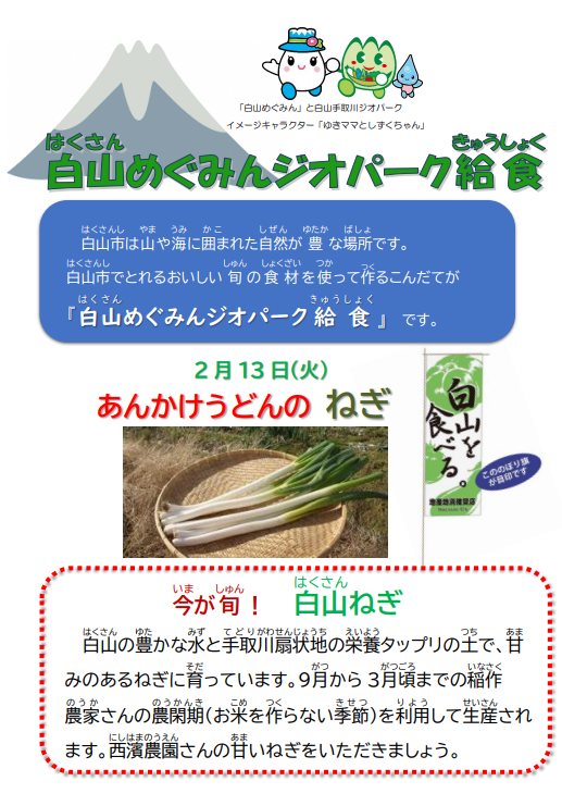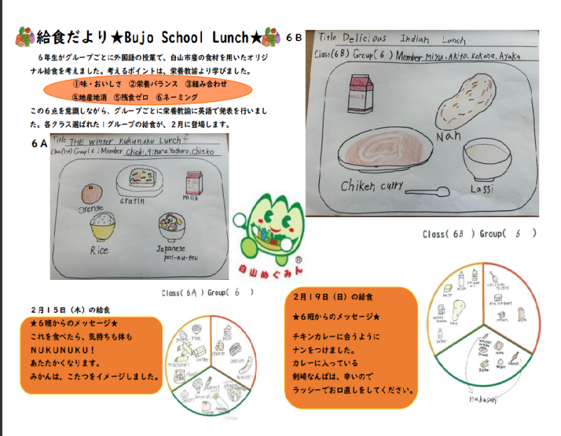 白山市産のブロッコリー(そぼろっコリー丼)や地元の農家さんが作ってくれた玉ねぎ・大根(さつま汁)や1.2年生が作ったさつまいも(さつま汁)を使いました。