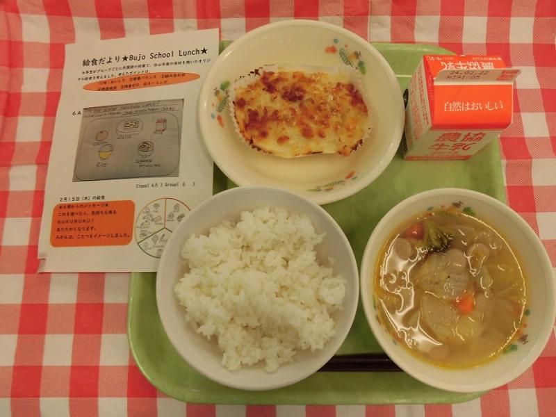 6年生にとっては、調理員さんが心を込めて作ってくれる小学校の給食も、あと2回になりました。