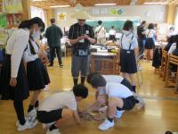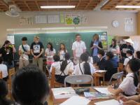 6月5日(月)に、アメリカのコロンビアより9名の方が訪問しました。6年生と一緒に学校探検をしながら音楽室や図工室でクイズに答えてもらったり、図書館で絵本を読んで紹介したり、日本の伝承遊びを紹介したり遊んだりしながら交流を深めました。おいしい給食も一緒に食べました。