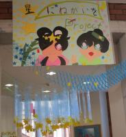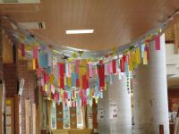 掲示委員会の5.6年生が全校に呼びかけ、短冊に書かれた願い事を七夕の日に、校内掲示しました。ワクワクしながら、つい上を眺めたくなる校内掲示になっています。