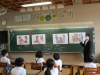 7月10日(月)に2年生の各クラスでピュアキッズスクールがありました。ピュアキッズスクールとは、社会のルールやきまり、約束について考えて、正しい行動ができるようになるための授業のことです。白山市警察署の方に来ていただき、「人のものをとること」について考えることができました。