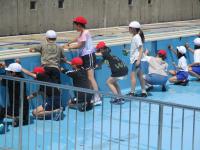 いよいよ6月19日(月)がプール開きです。それに先立ち、5年生が6月5日(月)にプール掃除をし、プールをきれいにしてくれました。本当にありがとうございました。各学年に応じて、水に慣れ、泳力を伸ばし、安全な水泳の仕方について学んでいきましょう。