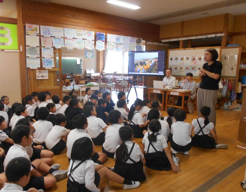 5月20日(火) 3年生が、 総合的な学習の時間にジオ学習を行いました。支援員の方から、竹松地区に伝わる昔話や竹松のはまなす群生地についてお話を聞きました。