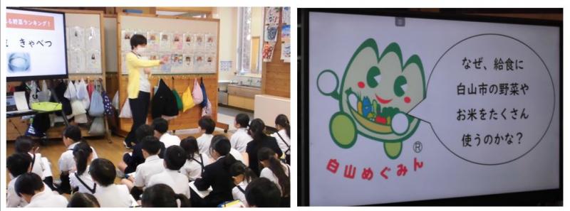 5月27日(火) 3年生が総合的な学習の時間に、ジオ学習の一環の授業で、「給食の食材はどこで作っているのだろうか」というタイトルで地産地消について國雲栄養教諭から学びました。