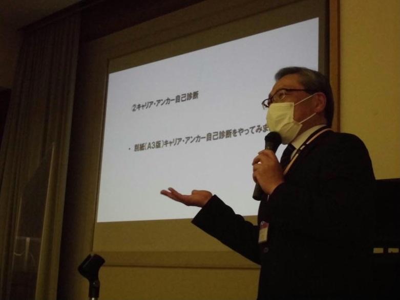 講師として、今年度からジョブカフェ石川キャリア教育支援グループリーダー 森田浩氏をお迎えし、「再任用ならではの、職場の心得15項目」など「働く環境の変化と期待される役割」とともに「自分にとっての働きがい再確認のために」について、「キャリア・アンカー」という新しい方法を用いて、個人ワーク、ペア・ワーク等を取り入れながら、具体的で分かりやすい講義を行っていただきました。