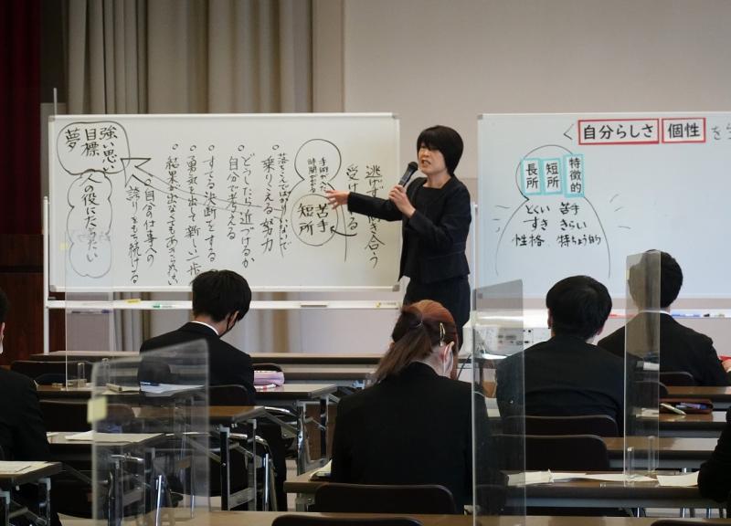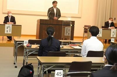 閉講式では、新村塾頭から「GIGAスクール構想など、教育界の新しい動きについても学びながら困難にも積極的に立ち向かうたくましい人間力を備えた教師を目ざして欲しい。」との励ましの言葉がありました。また、来賓としてご臨席いただいた県教員総合研修センターの杉中所長からは、「皆さんの眼差しから、この1年間がんばってきたという思いが伝わってくる。教員採用試験がゴールではなく、本県の教育をリードする教員となって力を発揮して欲しい。」との激励をいただきました。