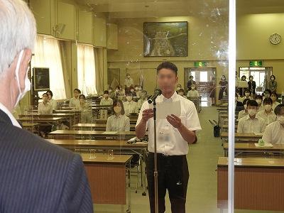 •  「コロナ禍の中であっても、師範塾を開き続けていただいたことに感謝したい。入塾した頃は実践的な知識が乏しく、自分がどのような教員になりたいのかも不明確のままであったが、講座や模擬授業を通して新たな学びを展開したり、考えを深めたりすることで教師としての自覚や自信をもつことができた。師範塾で学んだことを存分に発揮し、本県の教育に貢献したい。」(中高校グループ代表)