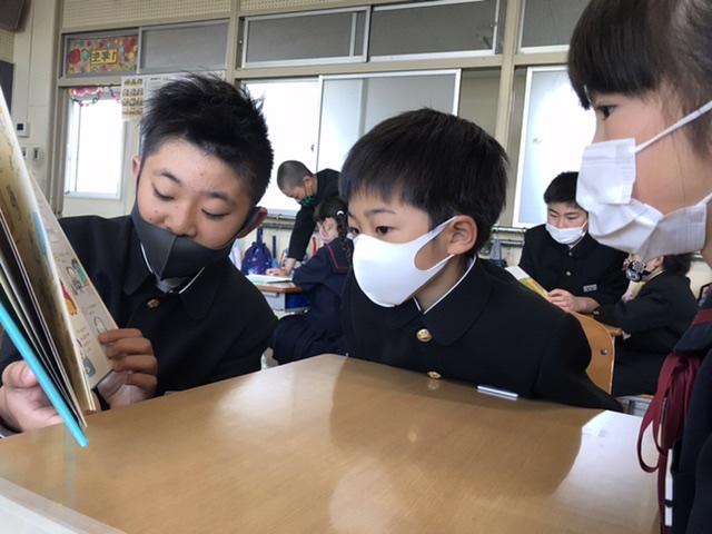4月9日 朝の風景です。6年生が1年生に本を読んであげています。微笑ましいです՞ ⸝⸝> ̫ <⸝⸝ ՞