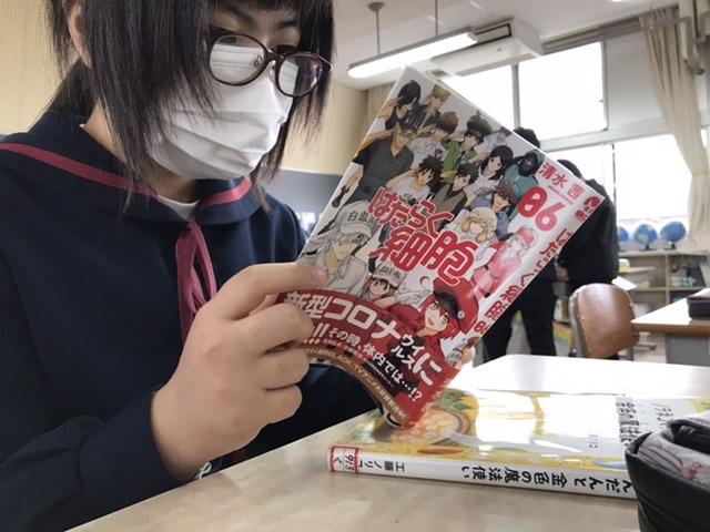 4月15日 図書館に新しい本が入りました。情報をキャッチして朝から読書している友だちを発見(*^^*ゞ