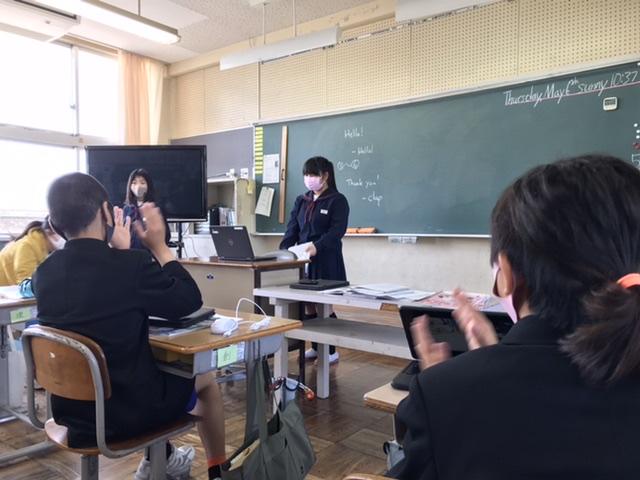 英語で自己紹介をしています。授業後に「楽しかった」が聞けるようにみんなでがんばっています。