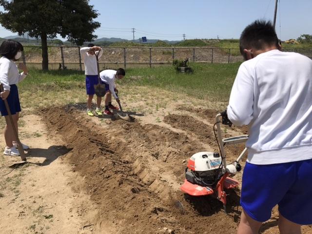 5月10日 今年も秋の焼きいもパーティーに向け、畑を耕しました。お家で耕運機のお手伝いをしている子もいて、ほぼ子どもたちが畑を作りました。