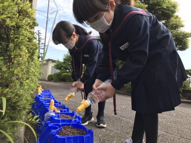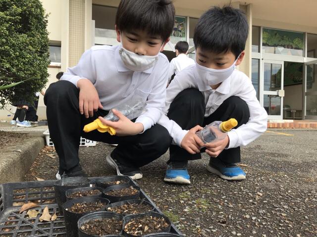 「アサガオさん、早く元気に芽を出してね。」