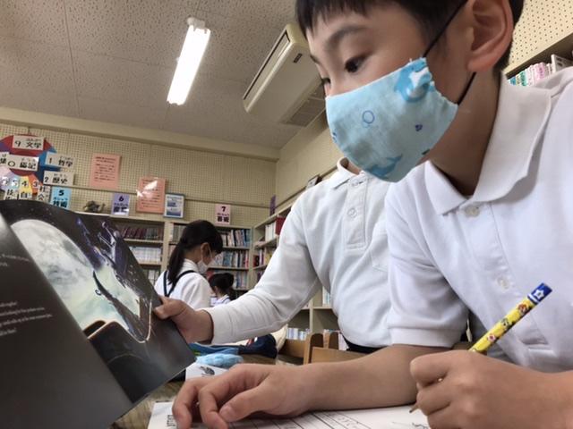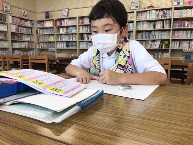 6月30日 勉強をがんばっている友だちを見つけました。放課後の図書室です。鉛筆の音が響いていました。