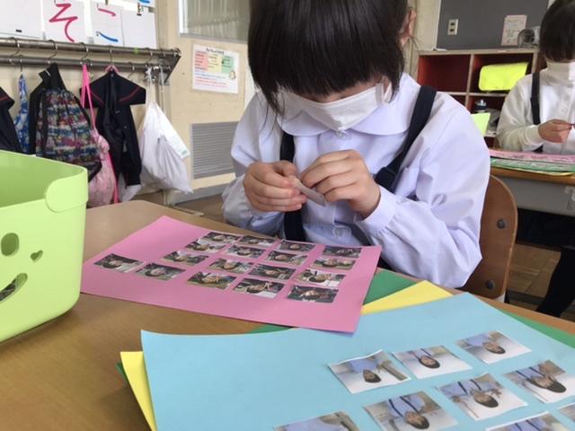 5月18日 1年生を迎え会でもらったプレゼントのシールでかわいいフォトブックを作っています。