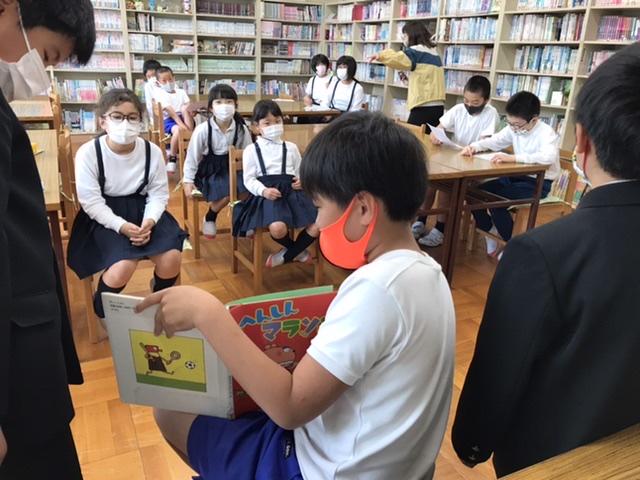 図書委員会の紙芝居を聞きに行きました。高学年も楽しめるくらい上手に読んでくれました。